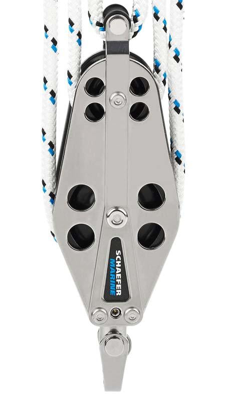 Fiddle block with becket and stainless steel cheeks. Works with 505-45 for a 4:1 purchase. Delrin(tm) sheaves ensure smooth operation and high safe working load.