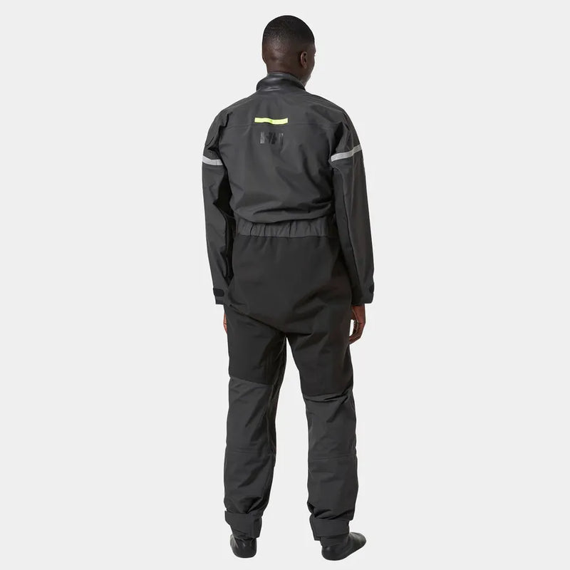 The Waterwear drysuit is developed with insight from professional sailors. The design has been tested in the harshest conditions. It's protective and warm gear you can wear when the waves are sending ice-cold water. Utilizing our 3-ply, seam-sealed HELLY TECH® Professional waterproof, breathable and windproof system, it withstands the harshest conditions and prolonged use. It features latex-sealed neck, cuffs and socks. You can customize the fit with an adjustable waist, adjustable cuffs and internal braces, also known as suspenders. We added reflective elements for safety. A diagonal zip gives you easy on and off.