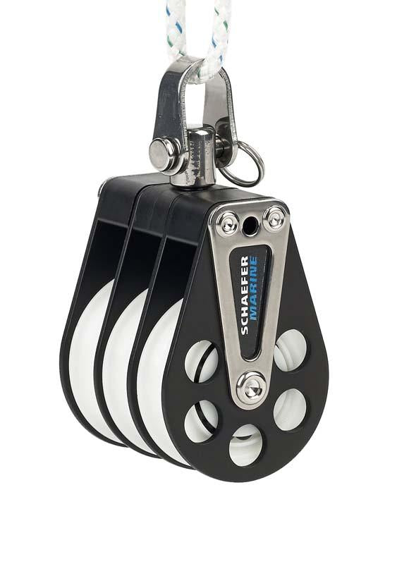 Triple block with ball bearing sheaves. Works with 506-93 for a 6:1 purchase. Delrin(tm) ball bearing sheaves ensure low-friction operation.